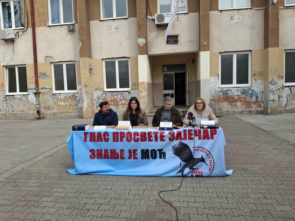Skup prosvetnih radnika i konferencija za novinare održani su u srednjoškolskom centru u Zaječaru, povodom pisanja tabloida „Alo” o profesoru Dejanu Goluboviću.
