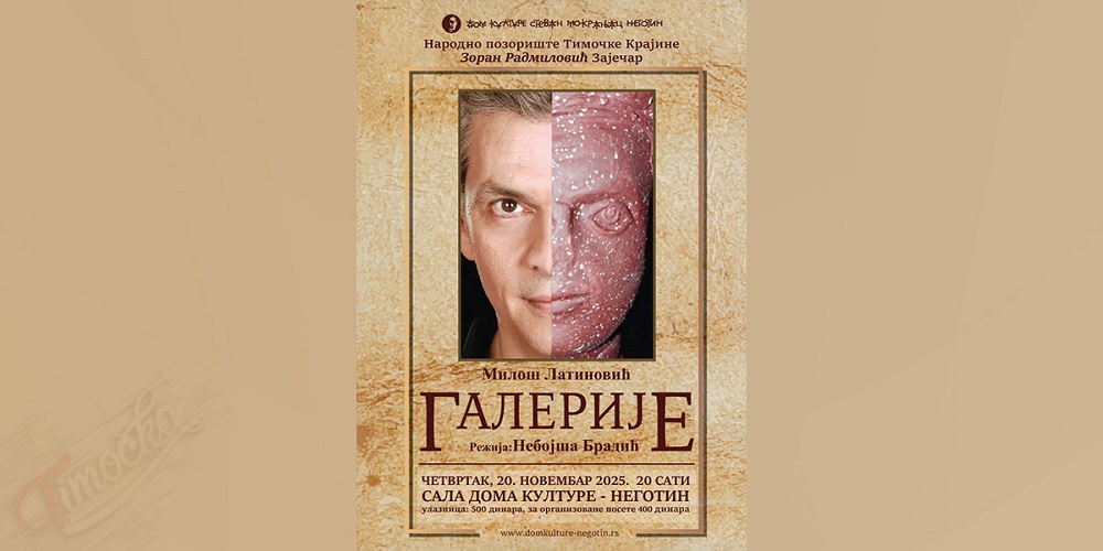 Dom kulture „Stevan Mokranjac“ u Negotinu ugostiće u četvrtak, 20. novembra 2025. godine izuzetnu predstavu „Galerije“ u režiji, adaptaciji i scenografiji Nebojše Bradića. Predstava je nastala po tekstu Miloša Latinovića, premijerno je igrana na otvaranju 34. Dana Zorana Radmilovića, a izvodi je ansambl Narodnog pozorišta Timočke Krajine „Zoran Radmilović“ iz Zaječara.