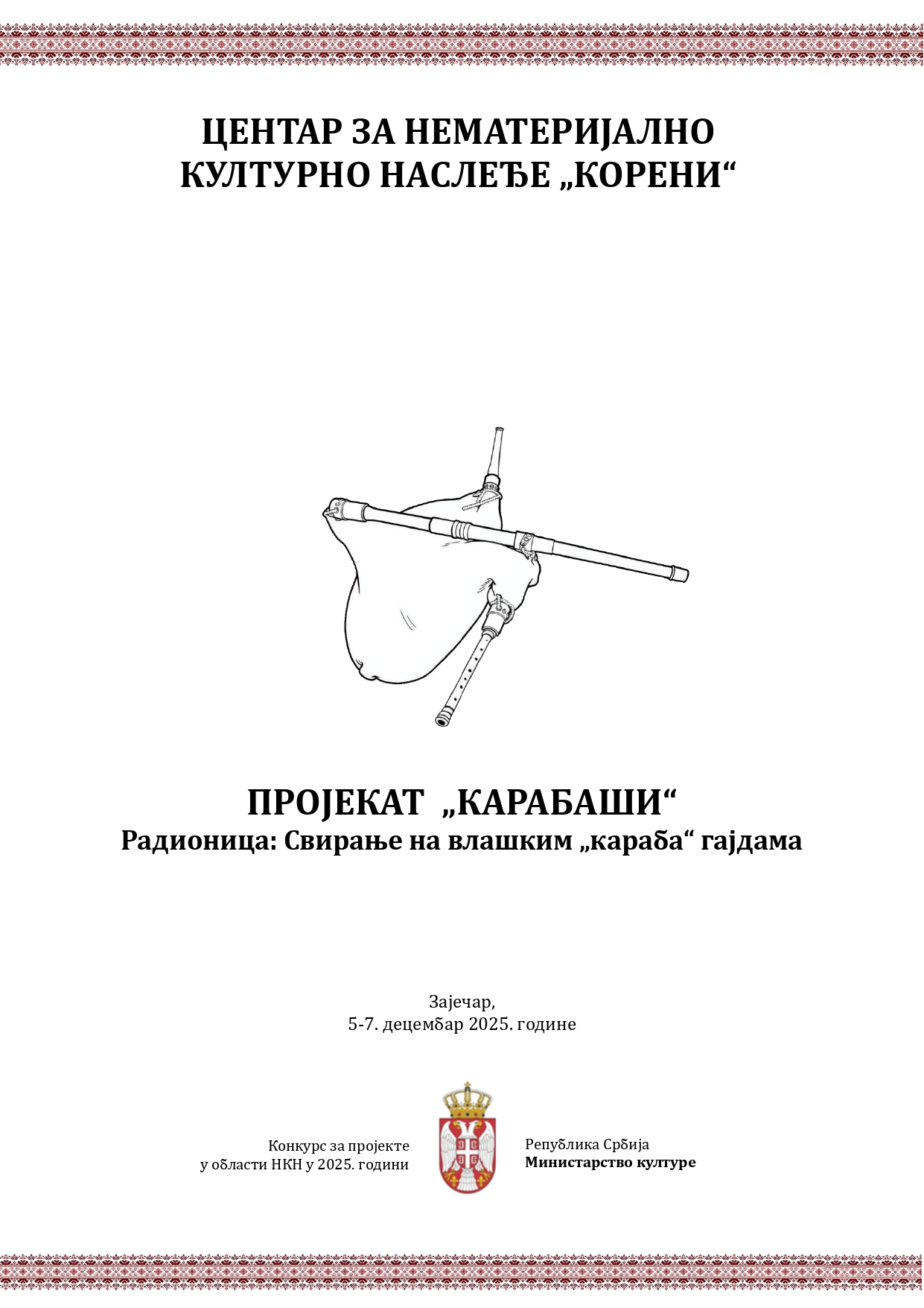 Centar za nematerijalno kulturno nasleđe KORENI organizuje u Zaječaru radionicu “Sviranje na vlaškim “karaba” gajdama”.