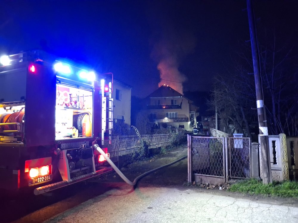 U ovom požaru izgorelo je potkrovlje i krov porodične kuće u centru sela Zvezdan, a povređenih nije bilo.