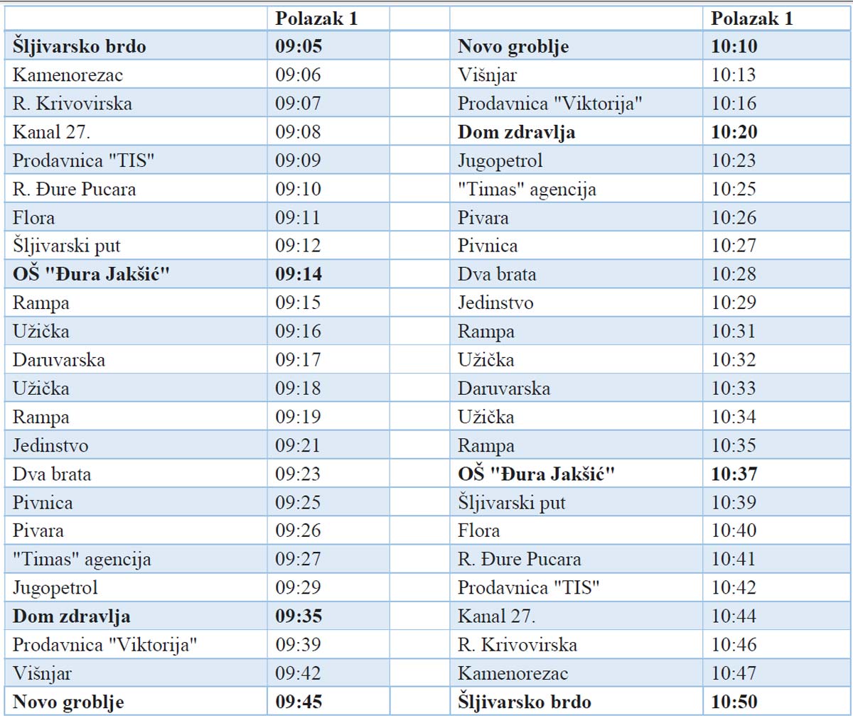 Za građane koji će za odlazak na groblje sutra koristiti gradski prevoz, evo rasporeda autobuskih linija koje će saobraćati do Starog i Novog groblja u Zaječaru.